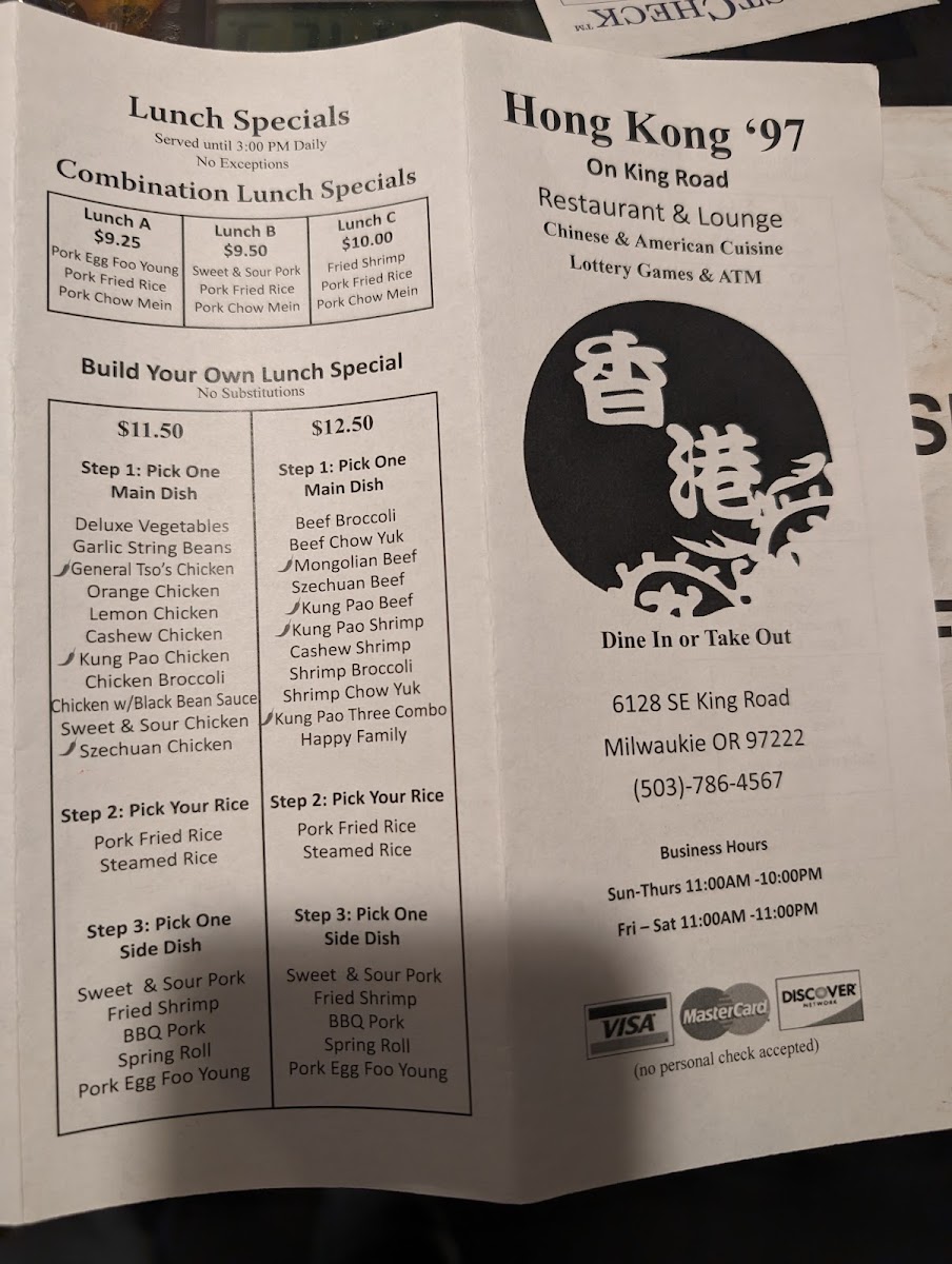 Welcome to Hong Kong 97 Restaurant, a hidden gem located at 6128 SE King Rd, Milwaukie, OR. This inviting eatery is celebrated for its authentic Chinese-American offerings and warm ambiance, perfect for a relaxing lunch or dinner. The menu showcases a delightful range of dishes, from crispy egg rolls praised by patrons as “golden perfection” to generous lunch specials that won’t break the bank.